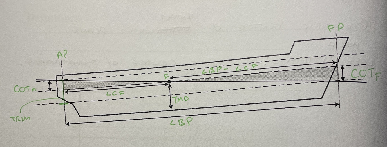 Longitudinal centre of flotation, a distance from the AP to the COF.