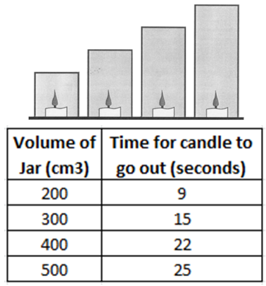 Dependent = time taken for candle to go out (s)
