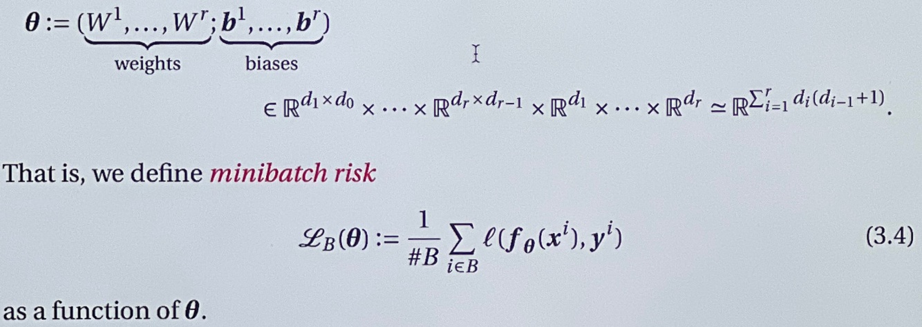 As architecture and activation functions have already been specified, the mini batch risk is not fully determined by the parameter vector