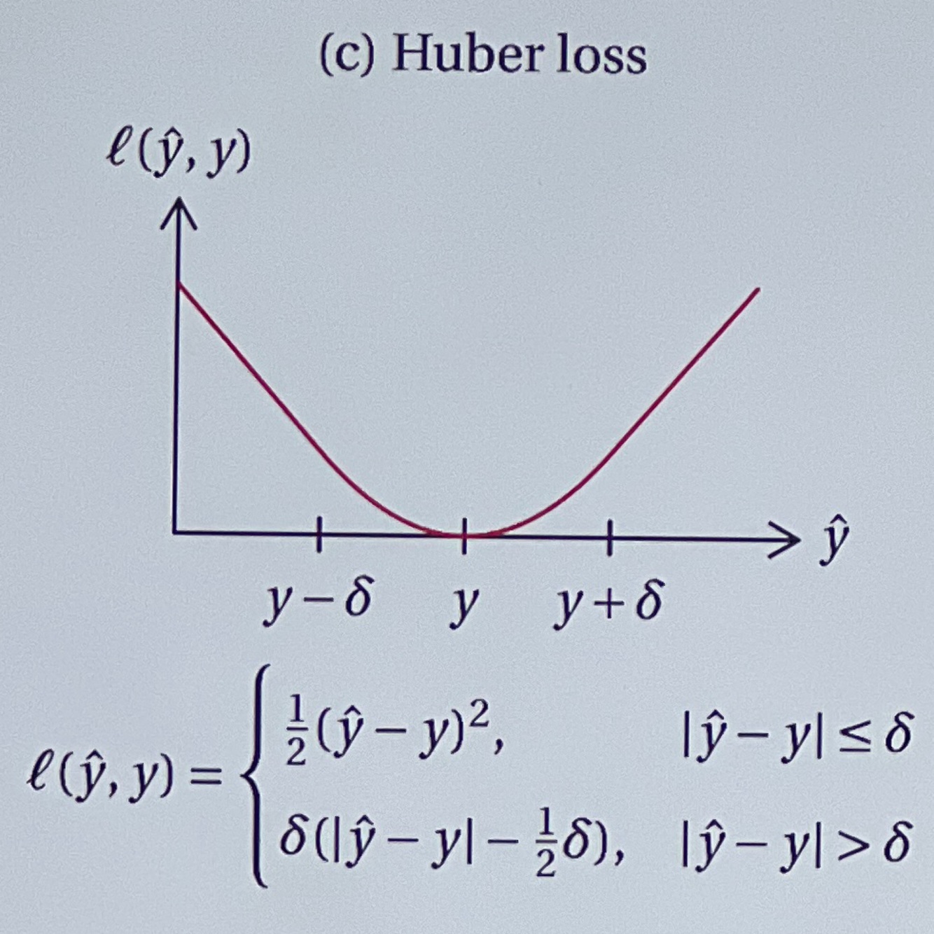 To minimise the effect of outliers but retain quadratic behaviour of loss in a δ neighbourhood (for small δ>0) we use Huber loss