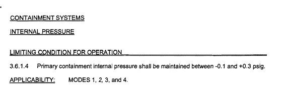 CNMT PRESS HI/LOW on CP002 will put you in LCO 3.6.1.4 Containment Internal Pressure.