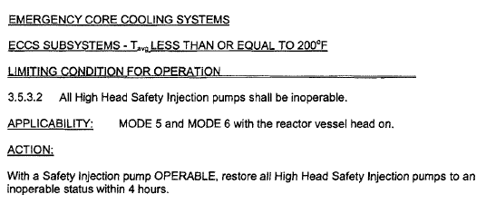 LCO 3.5.3.2 ECCS Subsytems - Tavg ≤ 200 ˚F