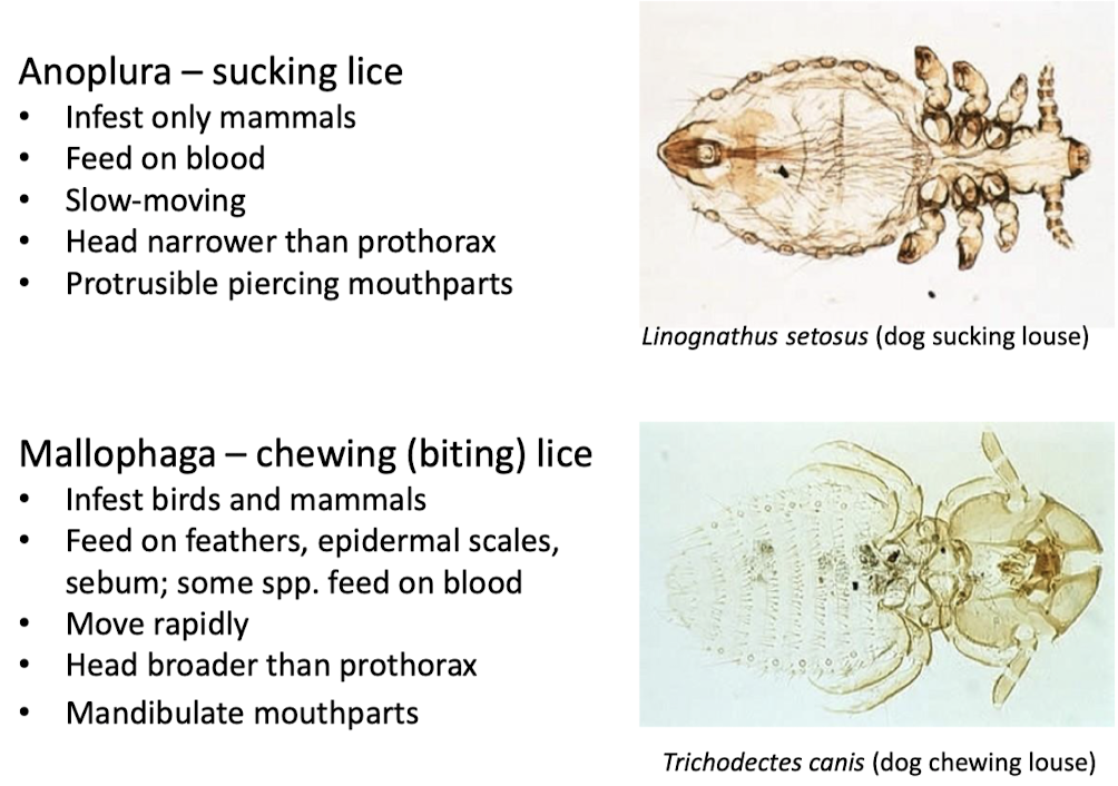 -pruritis and dermatitis -> scratching, rubbing & biting of infested areas