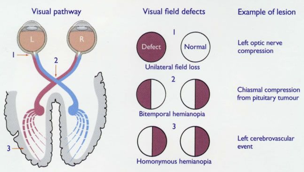 What diseases/injuries affect visual field?