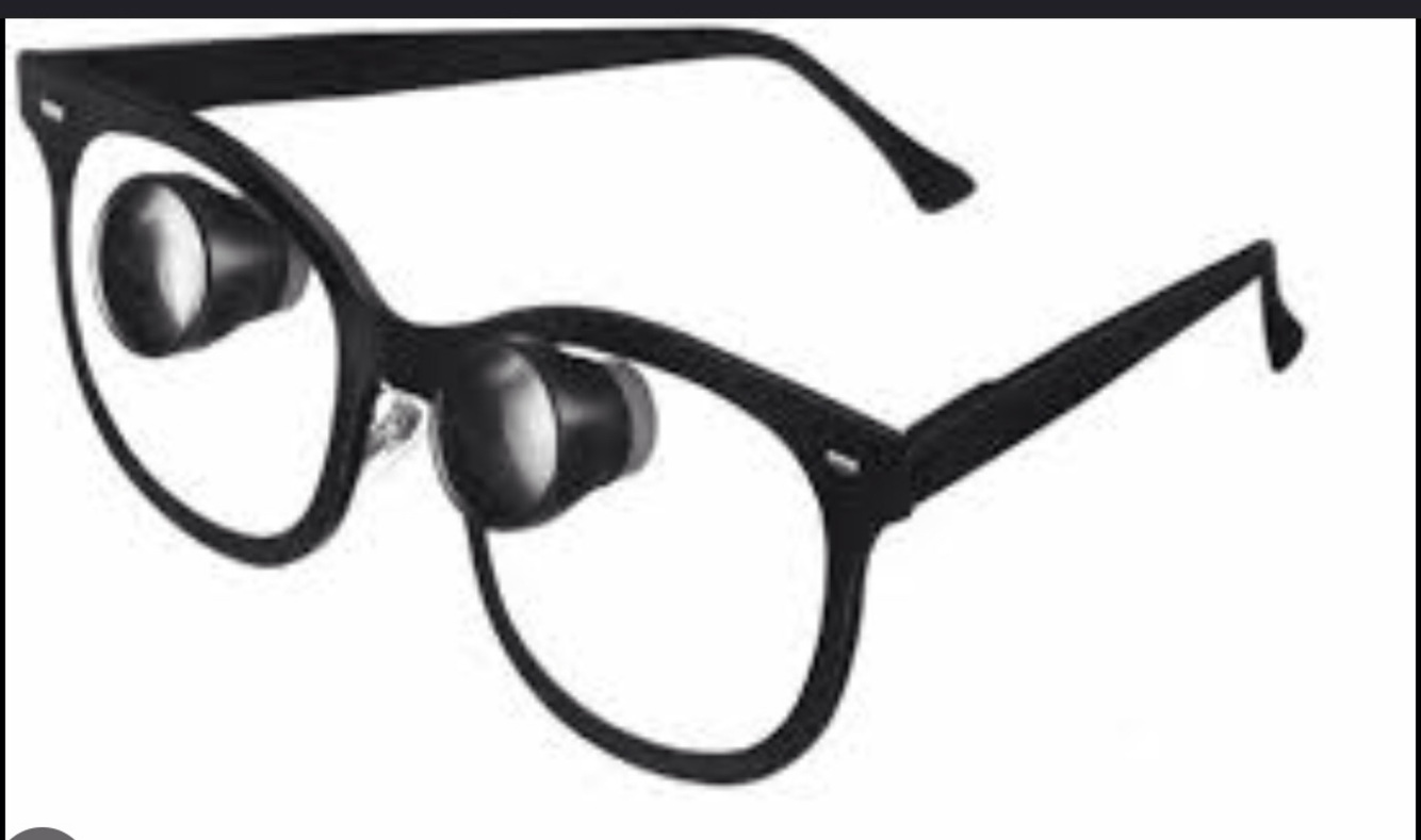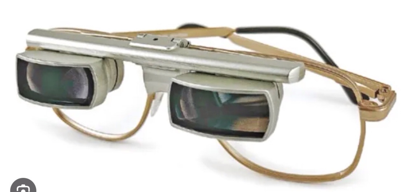 Mounted to pt’s glasses and are used for spot viewing while driving