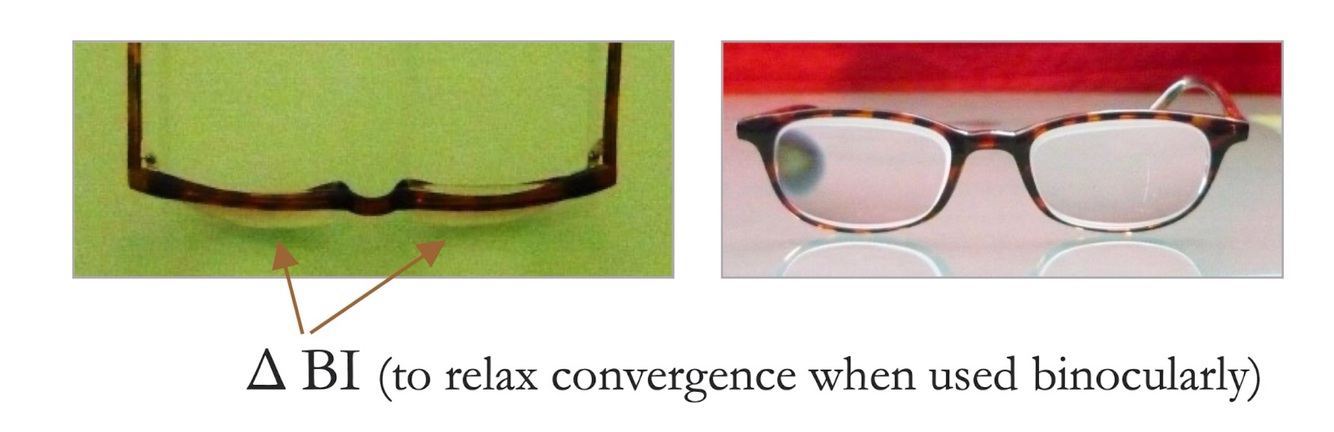 *BI prism for each eye = dioptric power of lens + 2 D