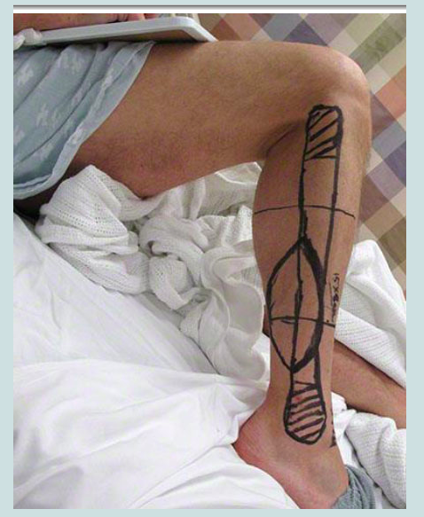 A free-fibular flap design with hash marks left intact is shown.