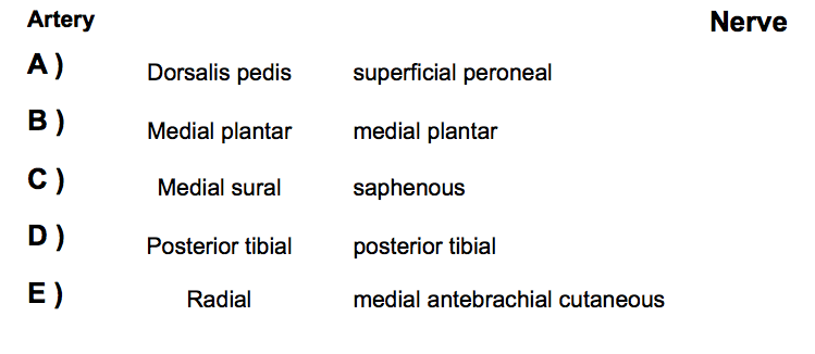 A ) Common peroneal B ) Deep peroneal C ) Sciatic D ) Superficial peroneal E ) Sural
