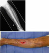 Free tissue transfer will bring healthy, nontraumatized tissue into the area to cover the exposed broken bone. Multiple recent studies have shown equivalence of muscle versus skin/fat/fascia flaps for coverage of the open fracture even in patients with osteomyelitis. Negative pressure wound therapy has proven to be an excellent adjunct in the management of patients with these injuries. Between washouts, negative pressure devices can help decrease edema and isolate the wound and bone from the outside world. In a patient with a IIIB injury, there is insufficient tissue available to cover the wound. Therefore, secondary intention would not close the wound.