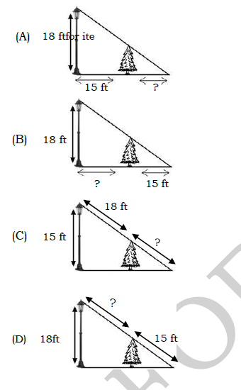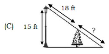 A 6-foot-tall pine tree in the park is planted 15 feet from a lighted streetlight whose lamp is 18 feet above the ground. Which of the following representations suits the problem?