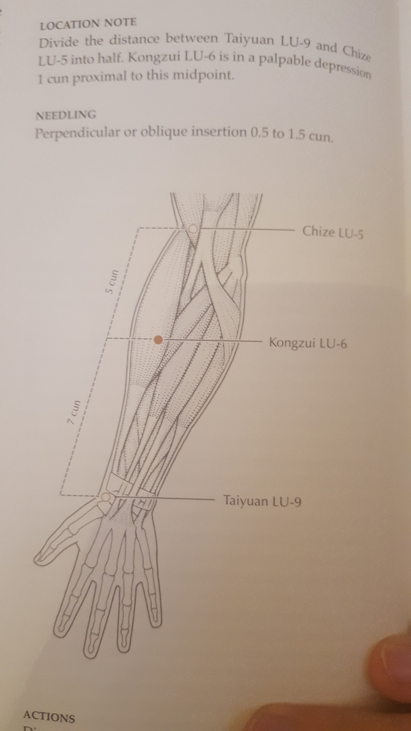 Divide distance between Lu9 and Lu 5 into half, Lu6 is palpable depression 1 cun proximal to this midpoint