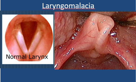 Omega shaped epiglottis with folds that collapse on inspiration causing severe airway obstruction – from immature, soft cartilage.