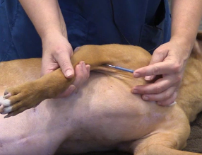 Medial aspect radiocarpal joint, just cranial to the radial artery. (at the level of HT 7) needle from dorsal aspect.