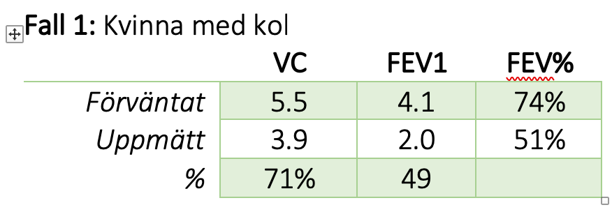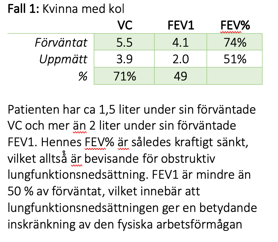 Normalt ska FEV1 vara >75 % av VC.