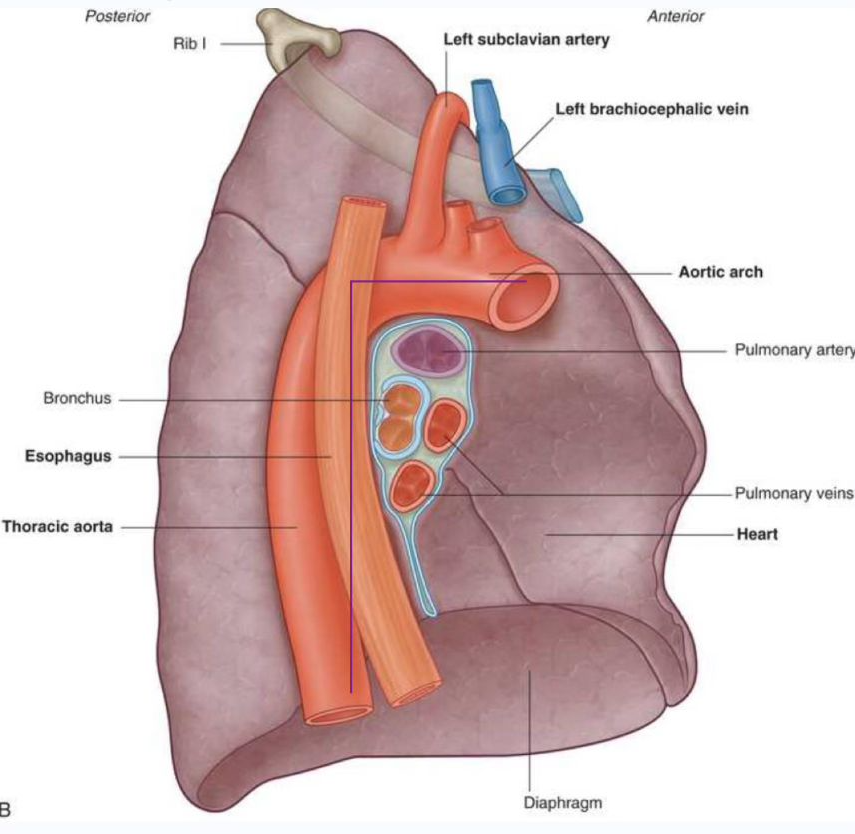 1. oesophagus is closest to hilum