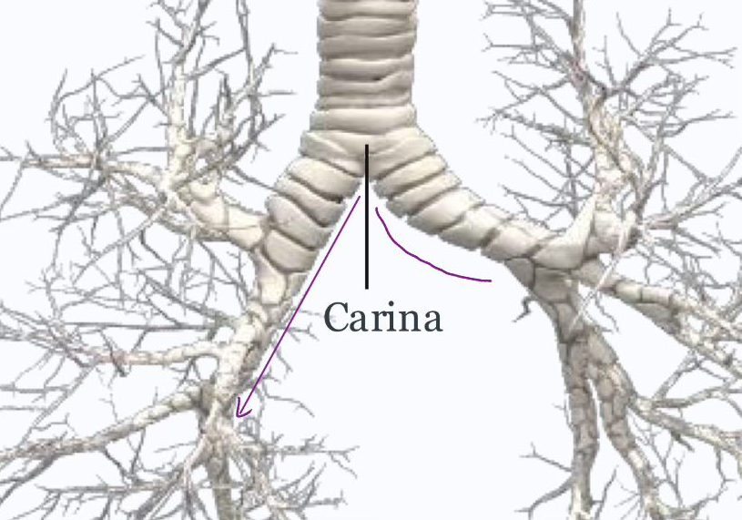 if you inhaled smth, it would most likely end up in right lung