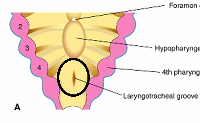 Opening of the laryngotracheal tube into the pharynx. Allows communication between developing trachea and pharynx.