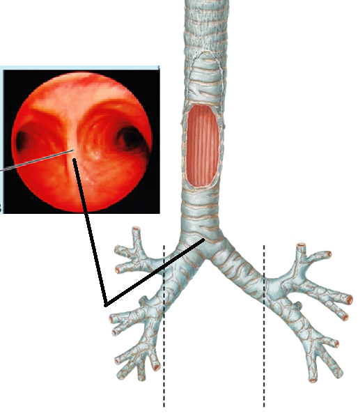 Site of bifurcation of left and right primary bronchi. Keel-like ridge located between orifices. Important for bronchoscopy