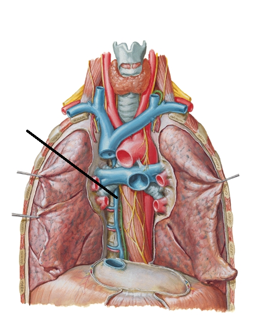 Forms arch over right priamry bronchus below superior vena cava. Runs directly into superior vena cava.