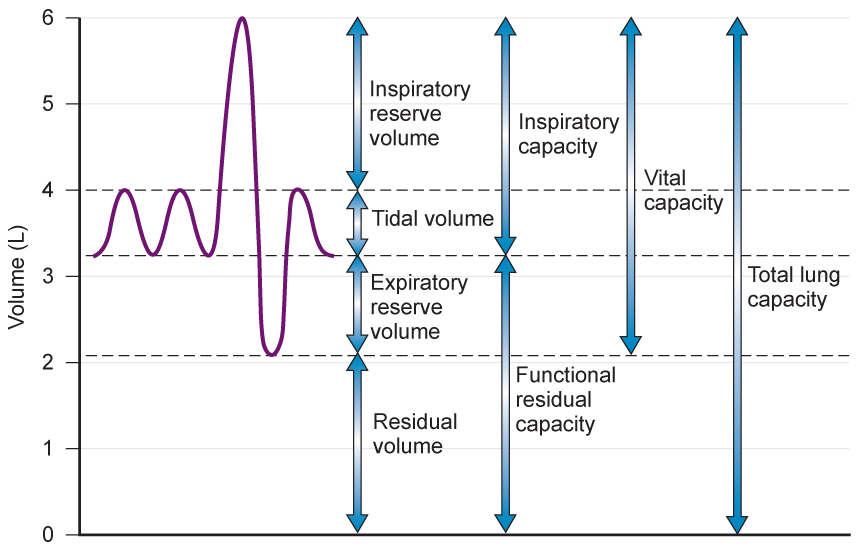 TV, IRV, ERV, RV, VC, FRC, IC, TLC