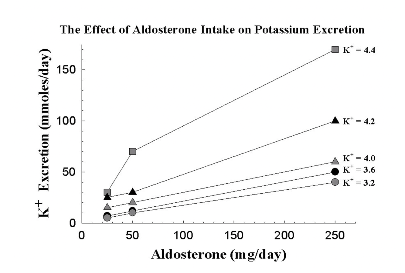 What is the effect of Aldosterone intake on Potassium Excretion