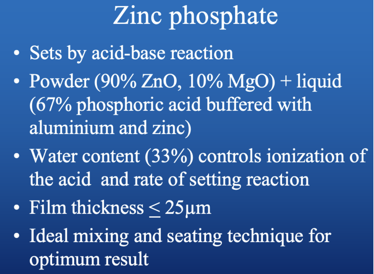 How does Zinc Phosphate set?