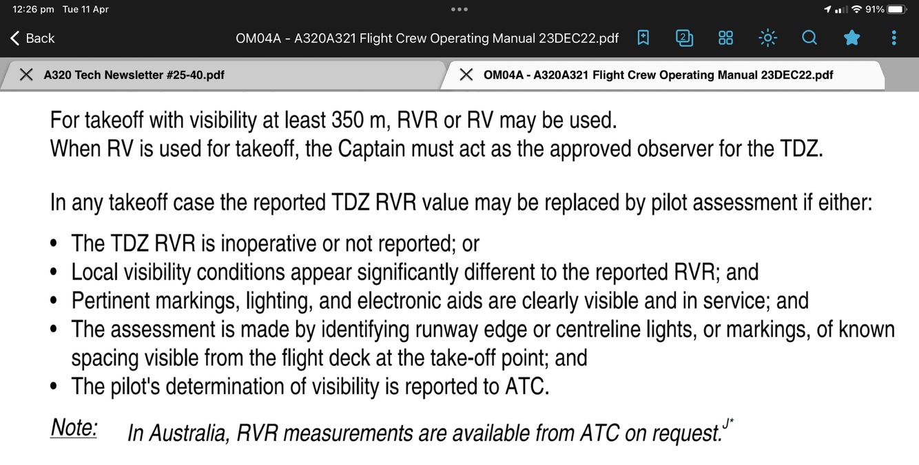 What Vis constitutes an LVO Takeoff?