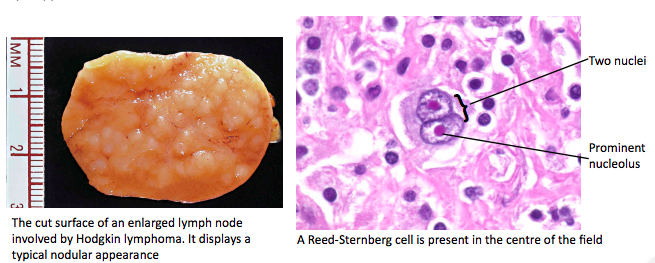 Diagnosis of Hodgkin lymphoma requires exicison of a node for histological examination. What is the defining pathological feature of Hodgkin lymphoma?
