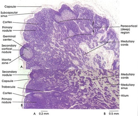 Histological structure of a lymph node