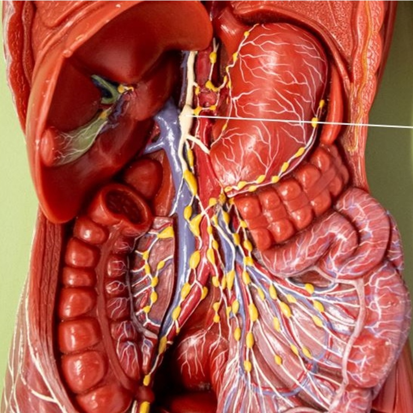 Located immediately anterior to the lumbar vertebrae in the proximity of the coeliac trunk.