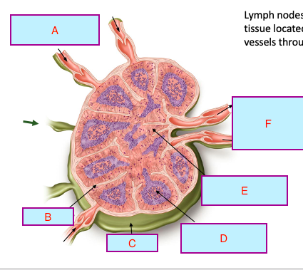 Lymph travels into the lymph node via tha afferent lymphatic vessels