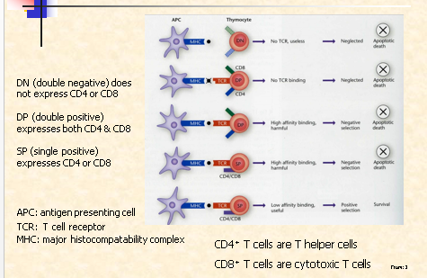 Enter medulla and presented with “self” antigens.