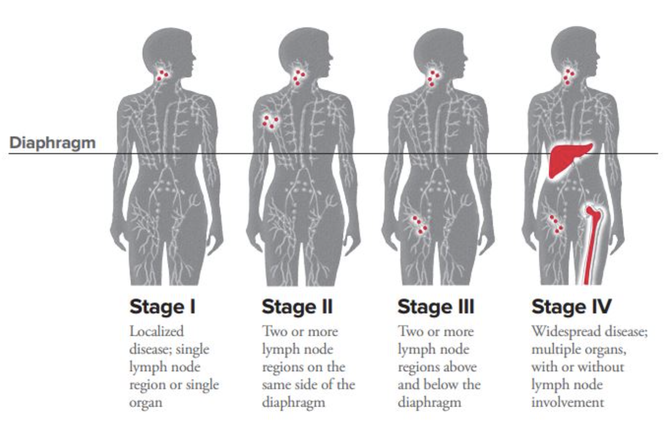 Malignant Lymphoma usually of B-cell origin, with the presence of Reed-Sternbeg cells (picture below) or the presence of Hodgekin cells