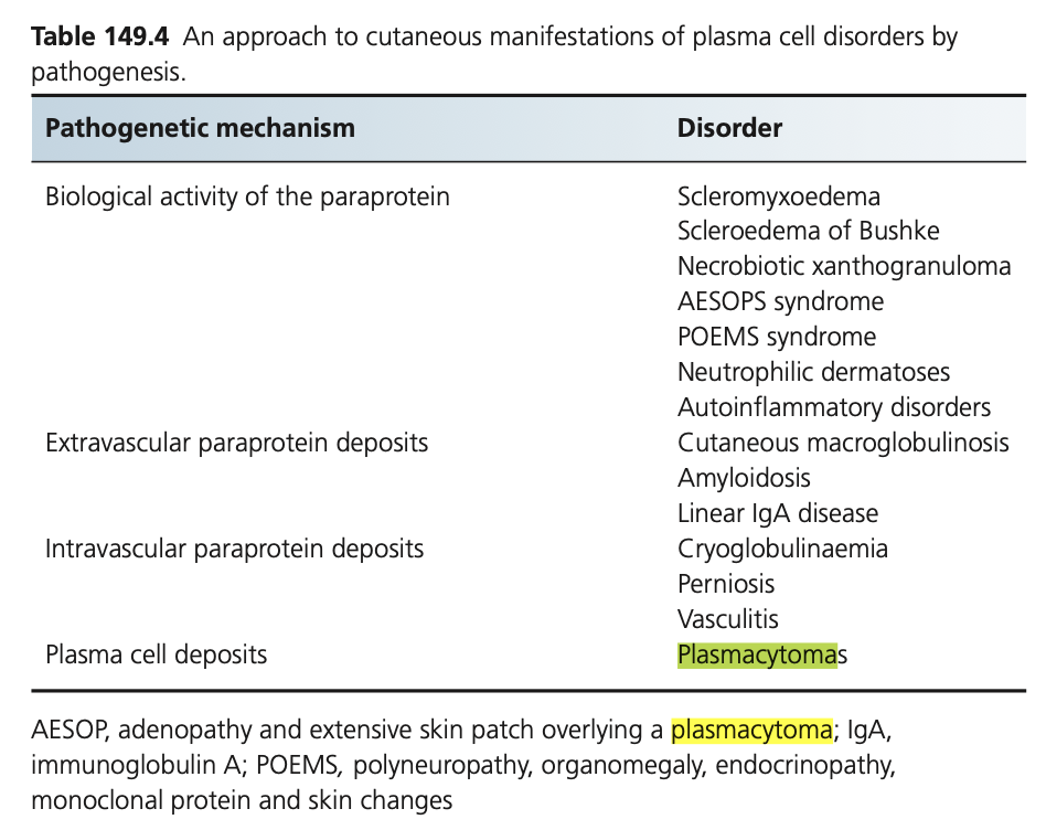 a presenting symptom and prurigo-like papules develop in some cases. Disseminated or unusually severe herpe szoster is common. In multiple myeloma, both generalised and local amyloidosis is common. Sweet syndrome and bullous pyoderma can be a non-specific manifestation of an underlying leukaemia. Thrombocytopenic purpura is a characteristic symptom of acute leukaemias and may occur on the skin or mucous membranes, often as the presenting symptom.