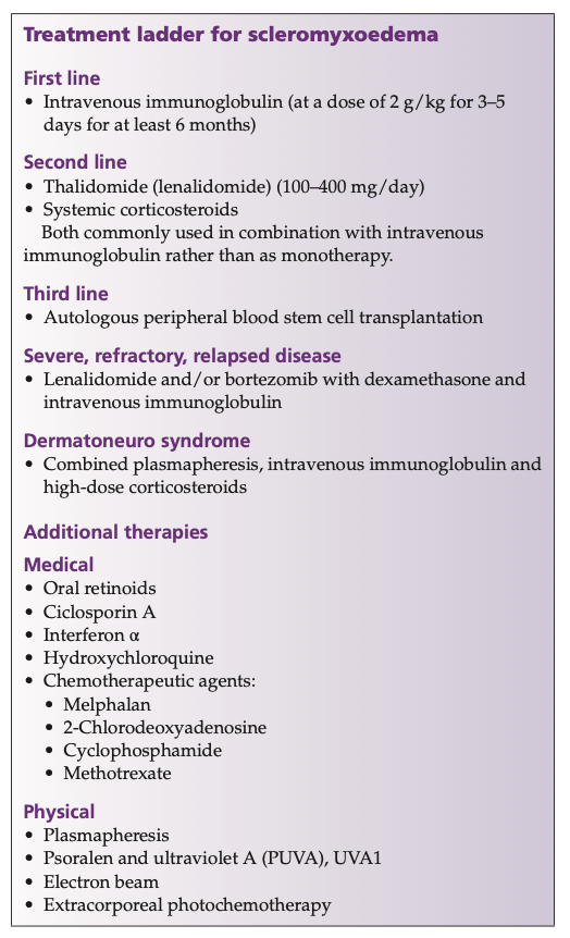 Outline the treatment for scleromyxoedema