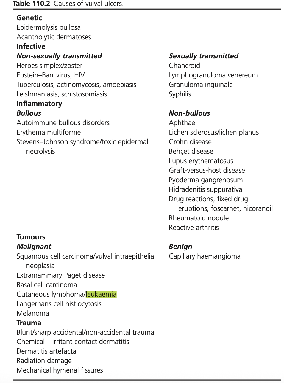 Outline the causes of vulval ulcers
