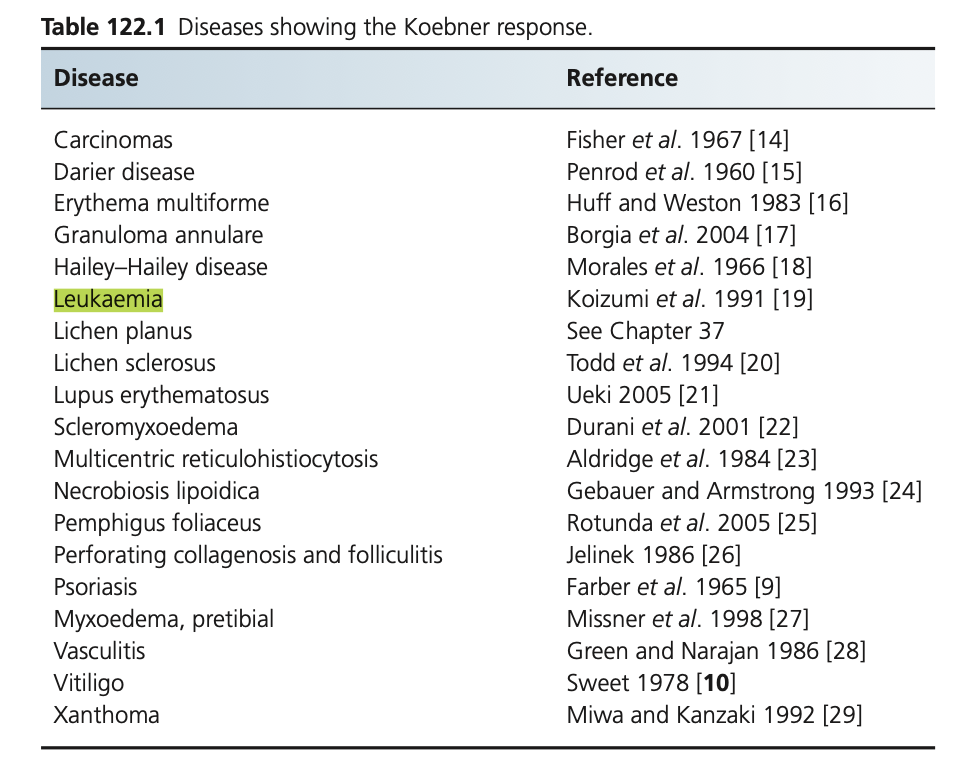 Outline diesease that show the koebner response