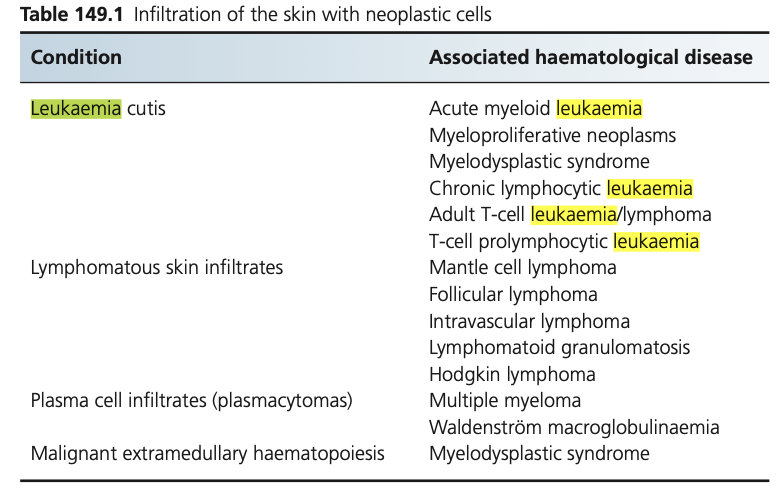 Outline the dermatological manifestations of leukaemia