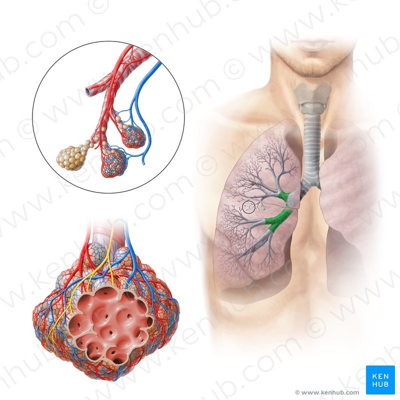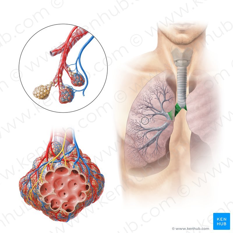 The process of respiration, gasses flow through lungs (inspiration) and flow out (expiration).