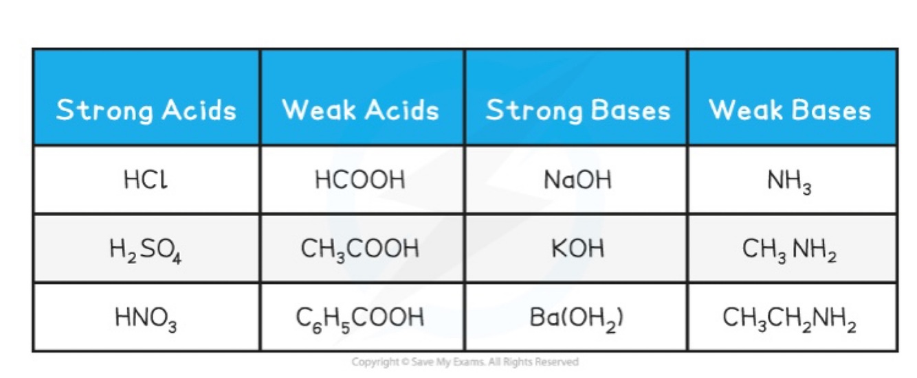 Acids + bases table