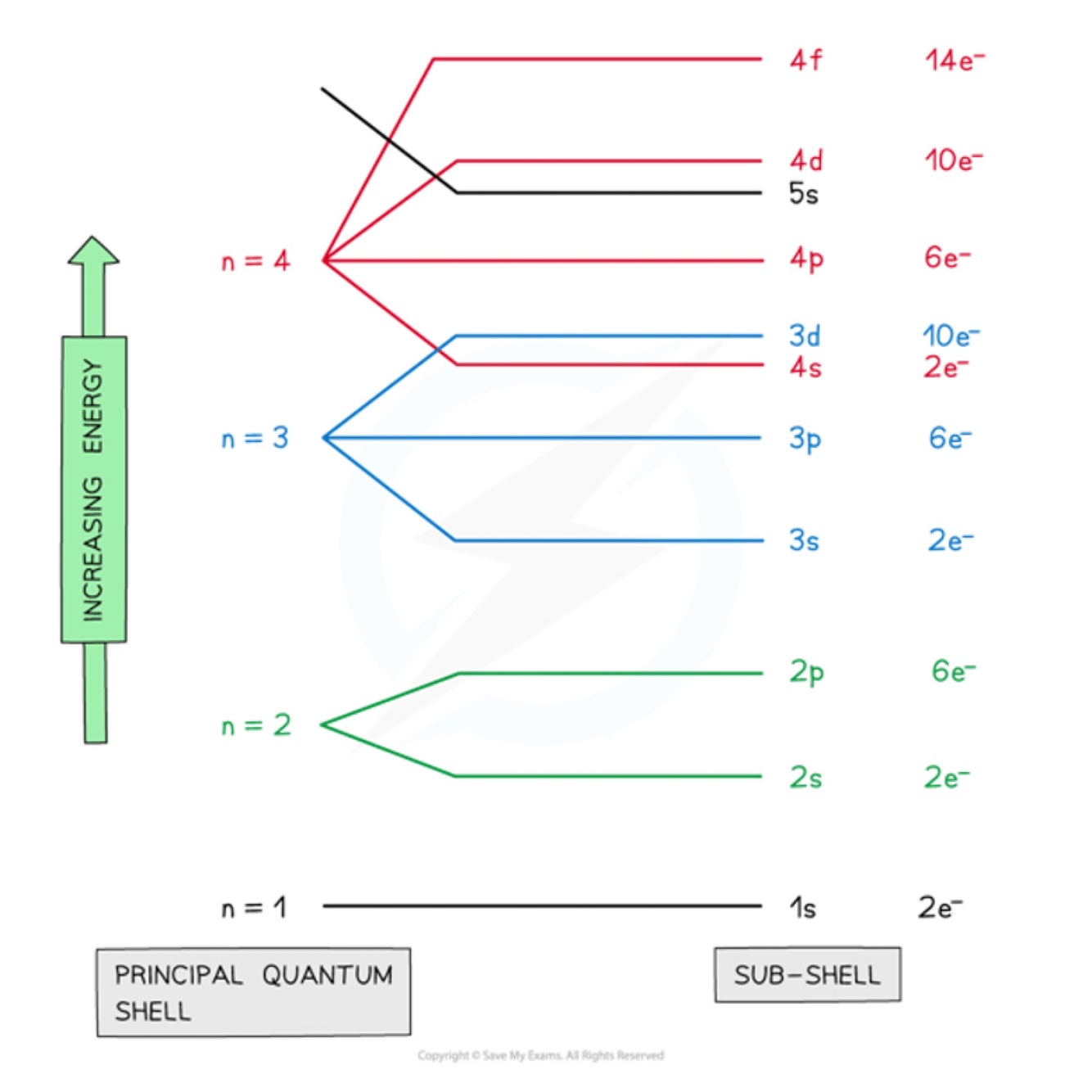 o The energy of the electrons in the subshells increases in the order s < p < d