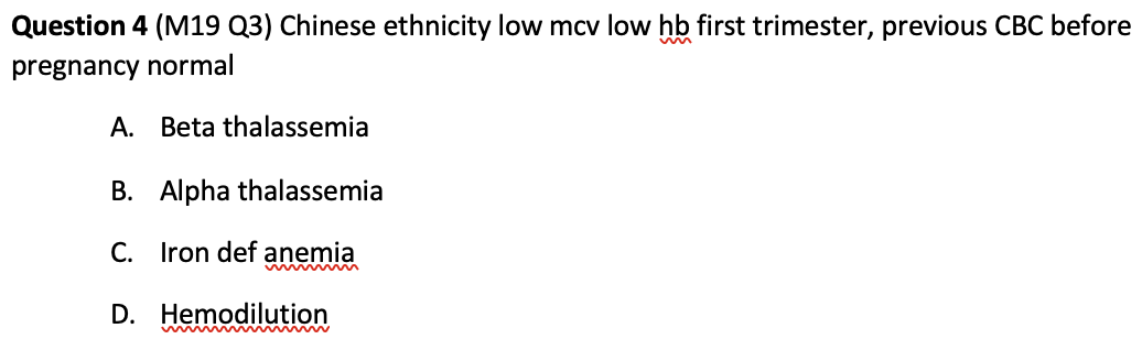 C (haemodilution wont cause low MCV, if thalassemia would have low MCV before pregnancy)