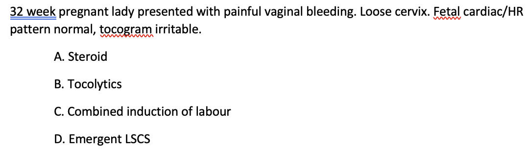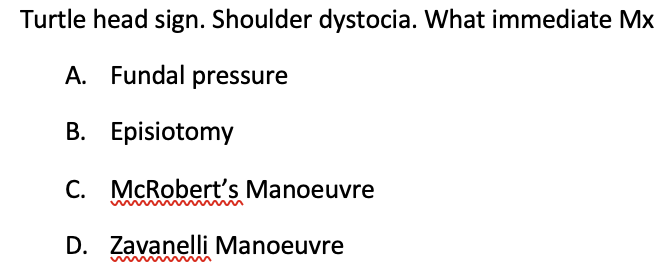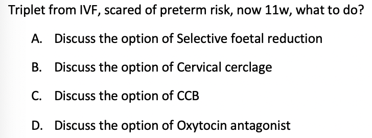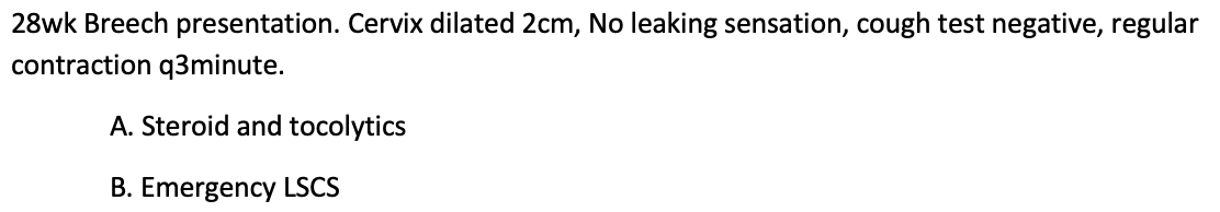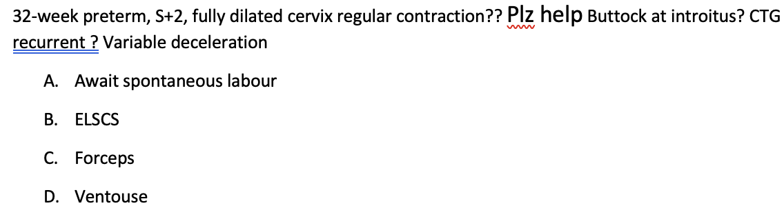C if normal cephalic presentation (easy as low down. Cannot do Ventouse as preterm baby. Cannot do LSCS as baby is too low)