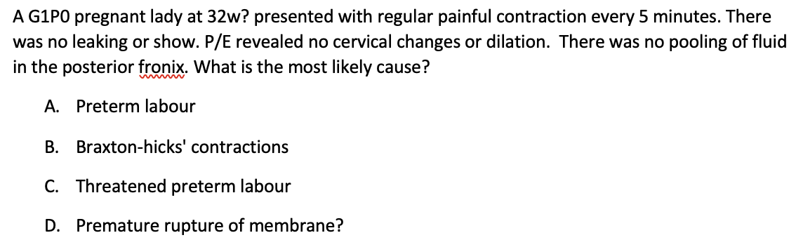 C (labor is defined as regular contractions that bring about cervical chance, 5-1-1 rule means patient is already having regular contractions)