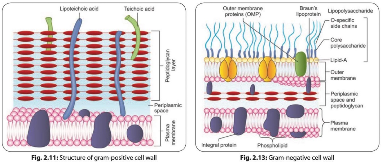 Décrit la structure de la membrane cellulaire d’un gram + de l’intérieur vers l’extérieur (5).