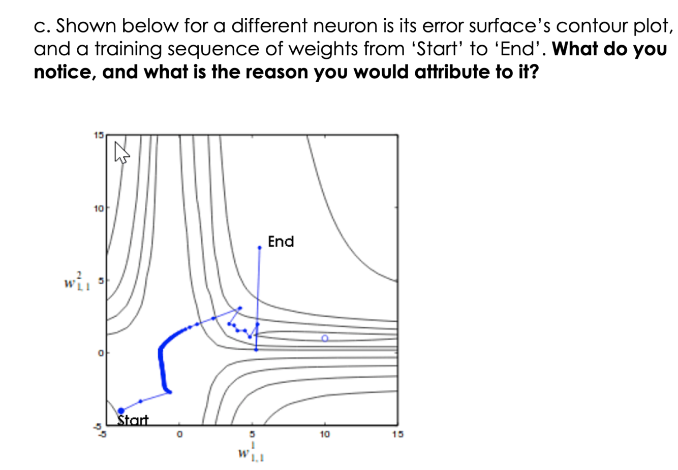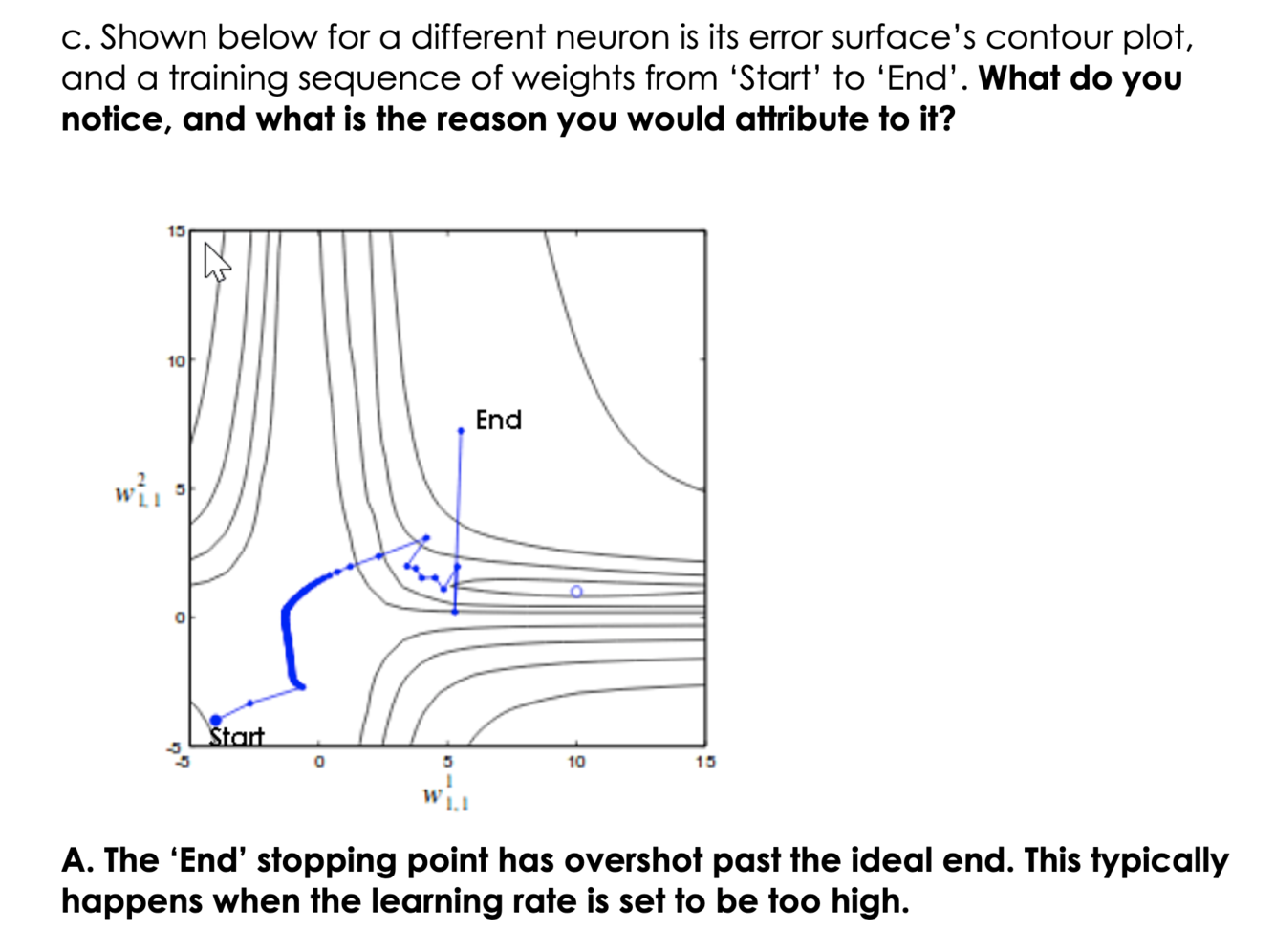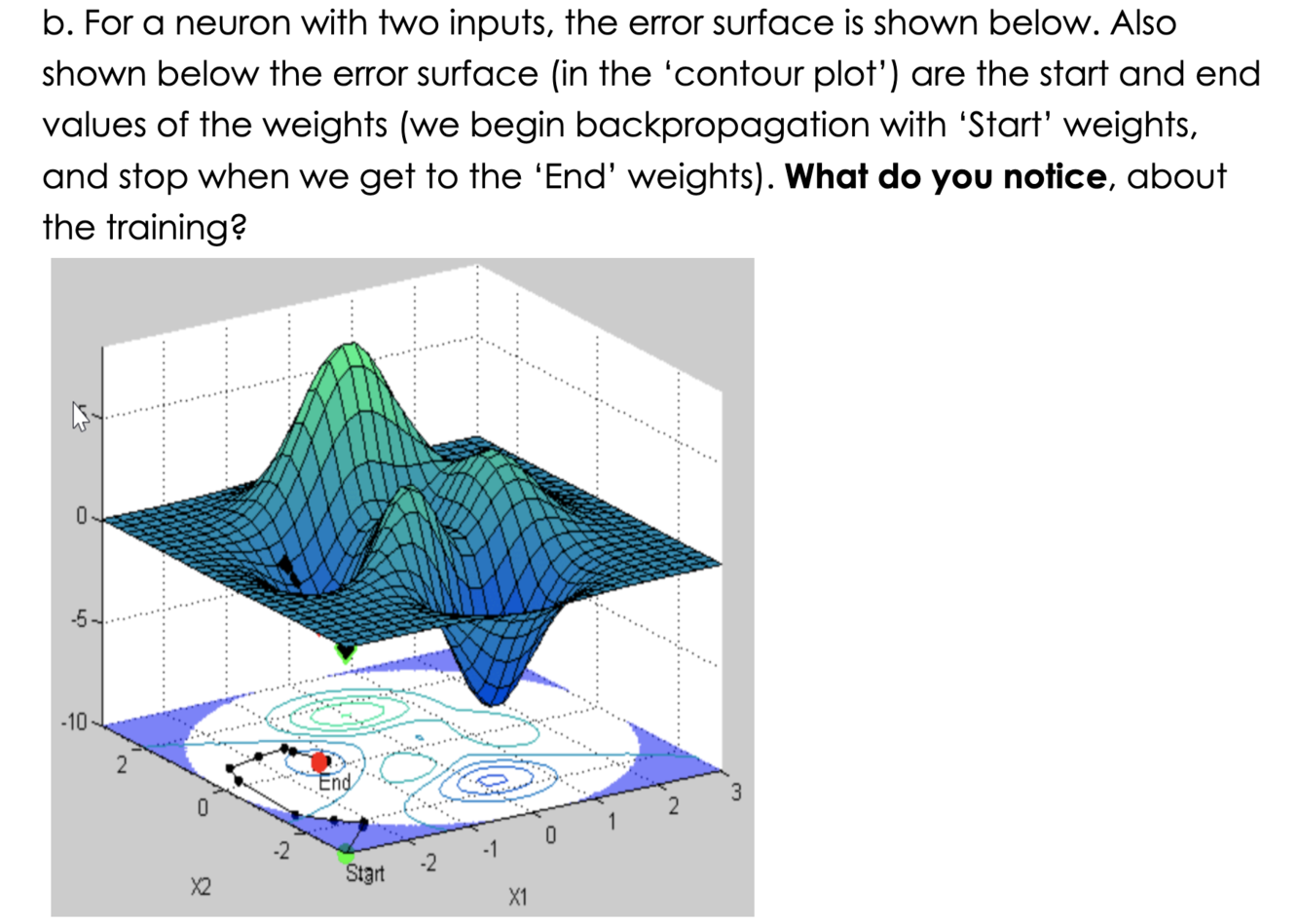 The error is a function of the network’s weights and biases. We call it loss function which we introduced last section. The goal of neural network is adjust the weight to minimize the output of loss function.