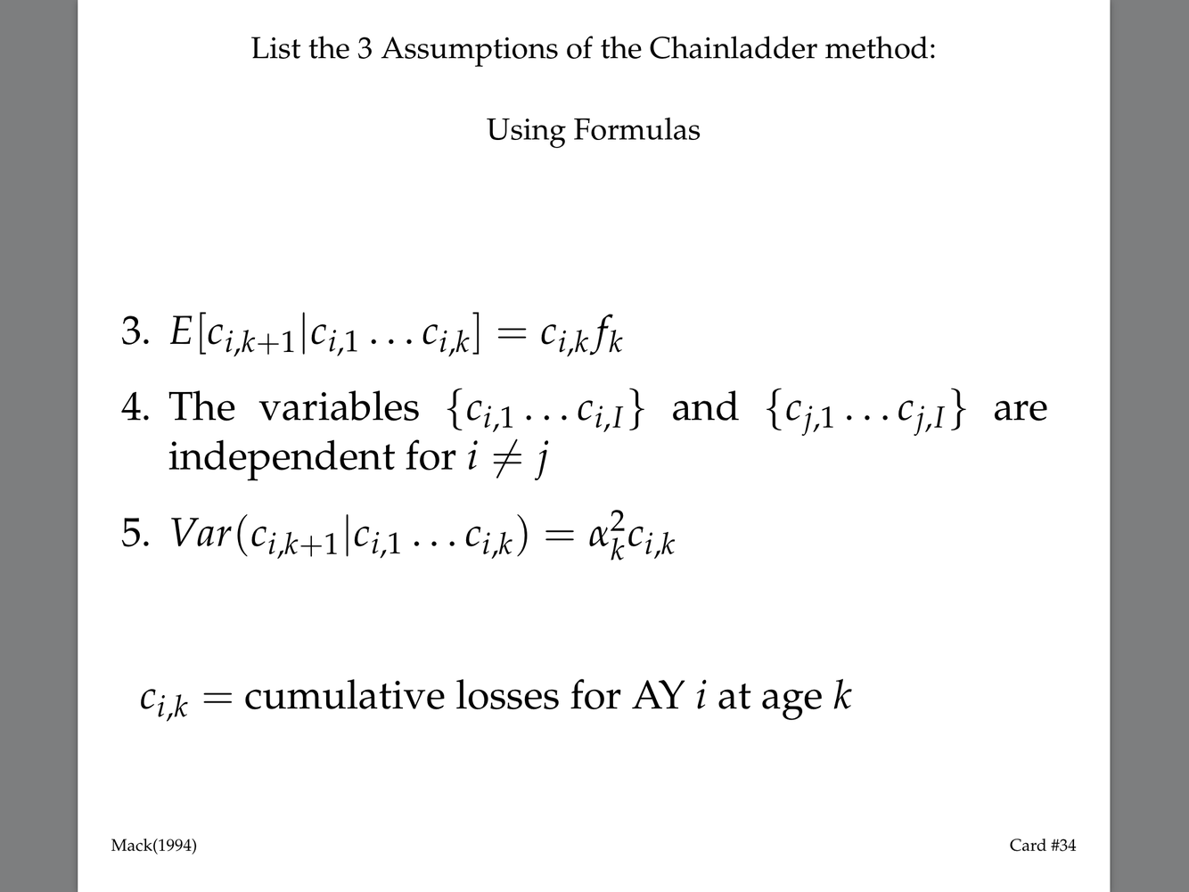 List the 3 Assumptions of the Chainladder method: Using Formulas