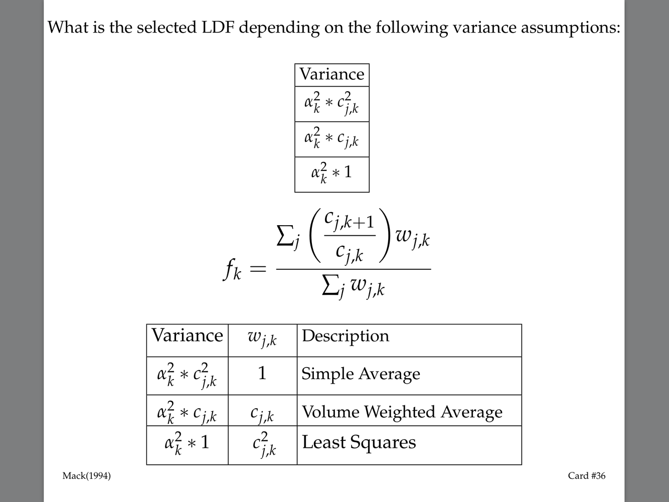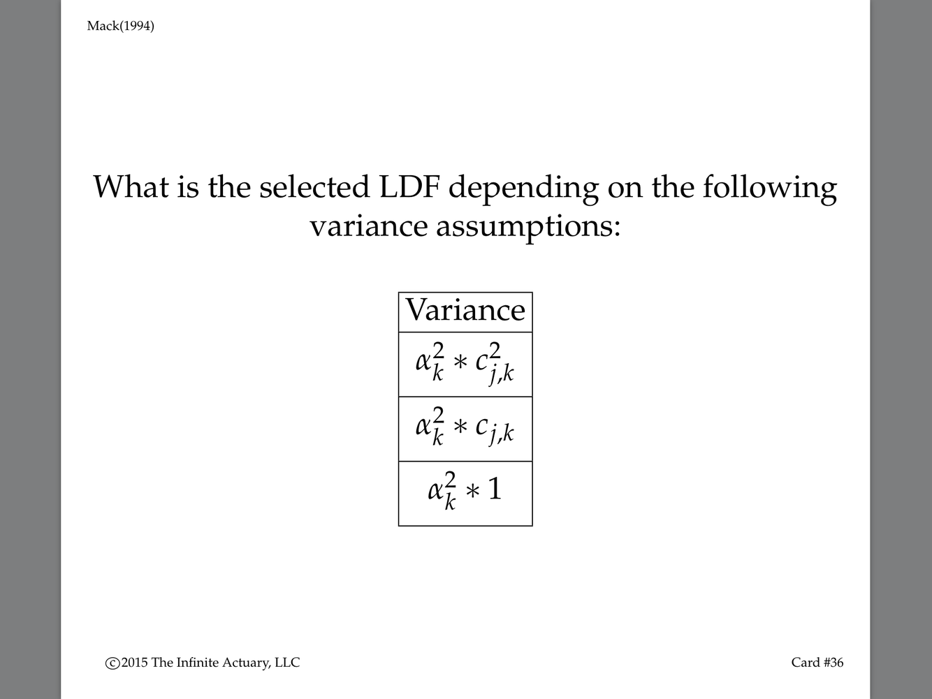 Provide 3 different variance assumptions for Cik