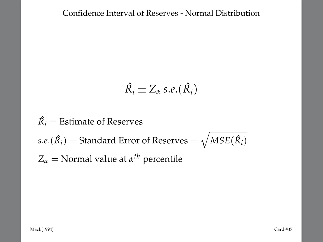 Confidence interval of reserves-normal distribution