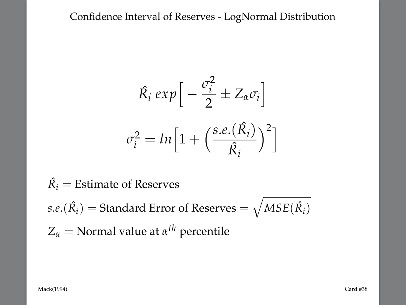 Confidence interval of reserves-Lognormal distribution